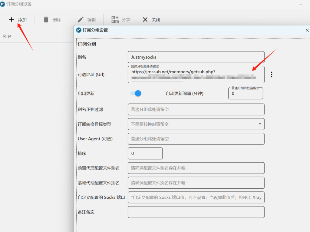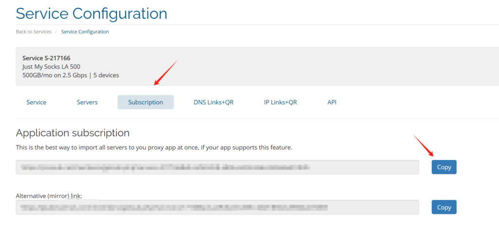 每个工具安装都很简单,只需要找到justmysocks后台的线路订阅链接subscription link,复制到对应的工具设置里面即可。